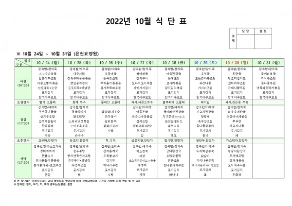 10월 넷째주 식단표 페이지 정보 작성자 은천노인복지회 작성일22-10-20 15:06 조회94,389회 댓글0건 관련링크 이전글 다음글 목록 답변 본문 . 이전글 다음글 목록 답변
