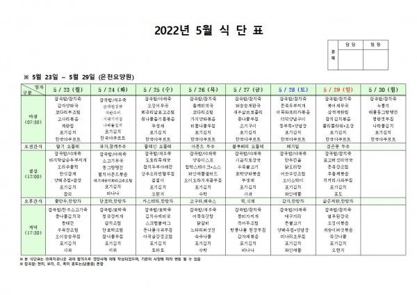 5월 넷째주 식단표 페이지 정보 작성자 은천노인복지회 작성일22-05-19 16:56 조회106,169회 댓글0건 관련링크 이전글 다음글 목록 답변 본문 . 이전글 다음글 목록 답변
