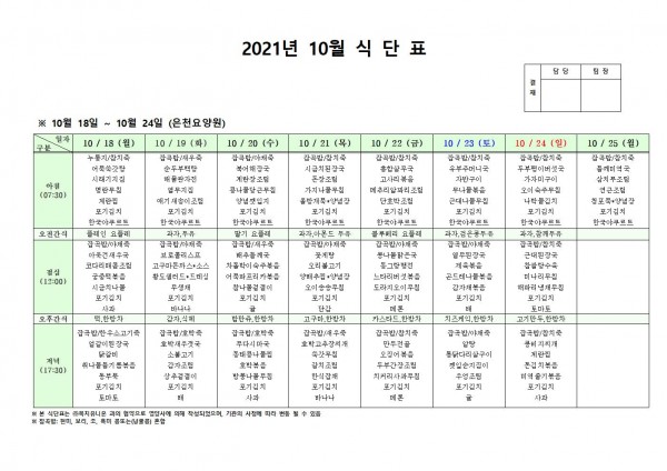 10월 셋째주 식단표 페이지 정보 작성자 은천노인복지회 작성일21-10-14 16:24 조회126,643회 댓글0건 관련링크 이전글 다음글 목록 답변 본문 . 이전글 다음글 목록 답변