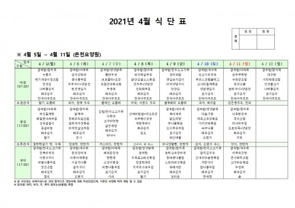4월 첫째주 식단표 페이지 정보 작성자 은천노인복지회 작성일21-04-01 18:24 조회142,013회 댓글0건 관련링크 이전글 다음글 목록 답변 본문 4월 첫째주 식단표 이전글 다음글 목록 답변