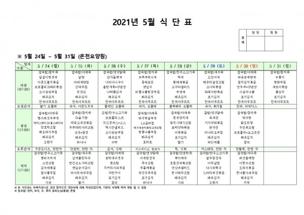5월 넷째 주 식단표 페이지 정보 작성자 은천노인복지회 작성일21-05-21 16:38 조회136,214회 댓글0건 관련링크 이전글 다음글 목록 답변 본문 5월 넷째 주 식단표 이전글 다음글 목록 답변