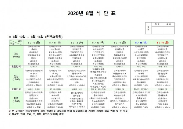 8월 둘째주 식단표 페이지 정보 작성자 은천노인복지회 작성일20-08-25 16:00 조회164,496회 댓글0건 관련링크 이전글 다음글 목록 답변 본문 , 이전글 다음글 목록 답변