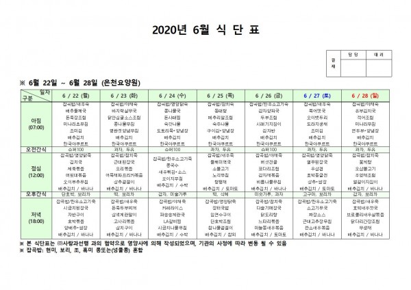 6월 넷째주 식단표 페이지 정보 작성자 은천노인복지회 작성일20-06-29 16:32 조회170,743회 댓글0건 관련링크 이전글 다음글 목록 답변 본문 . 이전글 다음글 목록 답변