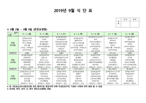 9월 첫째주 식단표 페이지 정보 작성자 은천노인복지회 작성일19-09-09 14:48 조회197,189회 댓글0건 관련링크 이전글 다음글 목록 답변 본문 9월 첫째주 식단표 이전글 다음글 목록 답변