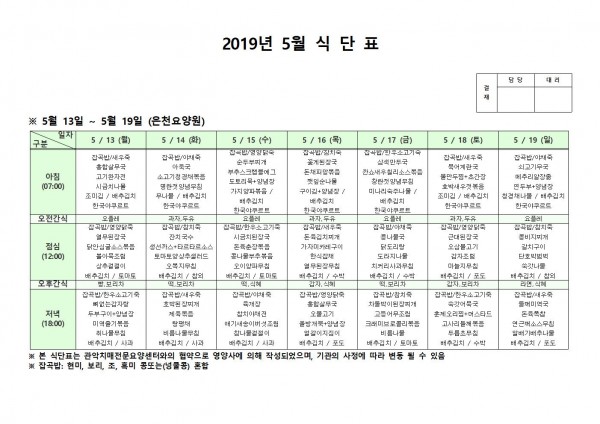 5월 둘째주 식단표 페이지 정보 작성자 은천노인복지회 작성일19-05-20 11:59 조회204,115회 댓글0건 관련링크 이전글 다음글 목록 답변 본문 5월 둘째주 식단표 이전글 다음글 목록 답변