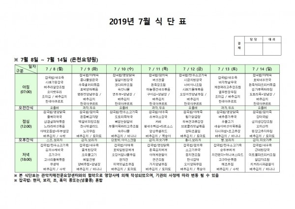7월 둘째주 식단표 페이지 정보 작성자 은천노인복지회 작성일19-07-15 10:56 조회199,049회 댓글0건 관련링크 이전글 다음글 목록 답변 본문 7월 둘째주 식단표 이전글 다음글 목록 답변