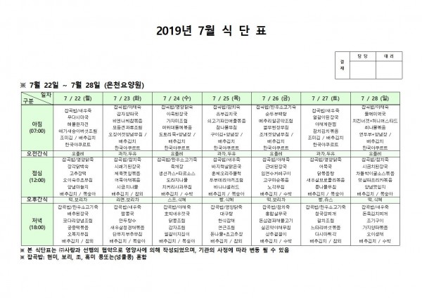 7월 넷째주 식단표 페이지 정보 작성자 은천노인복지회 작성일19-07-29 13:58 조회198,658회 댓글0건 관련링크 이전글 다음글 목록 답변 본문 7월 넷째주 식단표 이전글 다음글 목록 답변