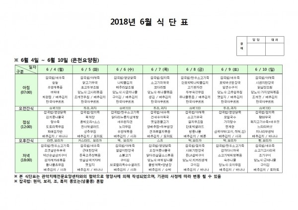 6월 둘째주 식단표 페이지 정보 작성자 은천노인복지회 작성일18-06-11 14:23 조회208,264회 댓글0건 관련링크 이전글 다음글 목록 답변 본문 6월 둘째주 식단표 이전글 다음글 목록 답변