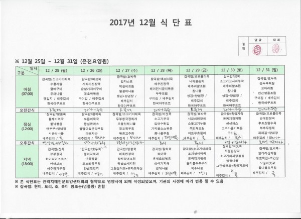 12월 다섯째주 식단표 페이지 정보 작성자 은천노인복지회 작성일17-12-26 11:49 조회193,146회 댓글0건 관련링크 이전글 다음글 목록 답변 본문 12월 다섯째주 식단표 이전글 다음글 목록 답변