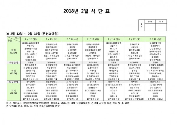 2월 둘째주 식단표 페이지 정보 작성자 은천노인복지회 작성일18-02-12 11:15 조회196,572회 댓글0건 관련링크 이전글 다음글 목록 답변 본문 2월 둘째주 식단표 이전글 다음글 목록 답변