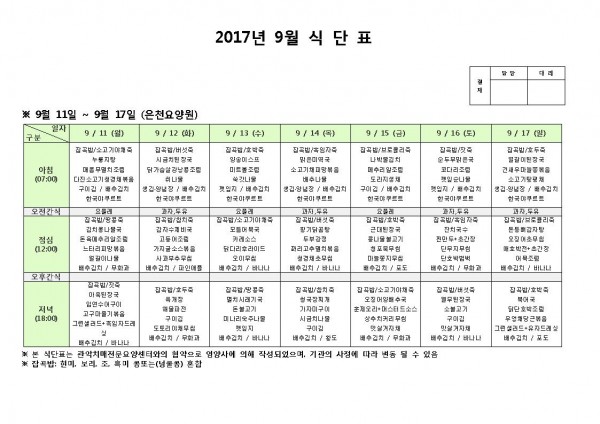 9월 둘째주 식단표 페이지 정보 작성자 은천노인복지회 작성일17-09-11 17:01 조회183,736회 댓글0건 관련링크 이전글 다음글 목록 답변 본문 9월 둘째주 식단표 이전글 다음글 목록 답변
