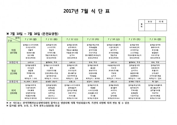 7월 둘째주 식단표 페이지 정보 작성자 은천노인복지회 작성일17-07-11 09:20 조회181,181회 댓글0건 관련링크 이전글 다음글 목록 답변 본문 7월 둘째주 식단표 이전글 다음글 목록 답변