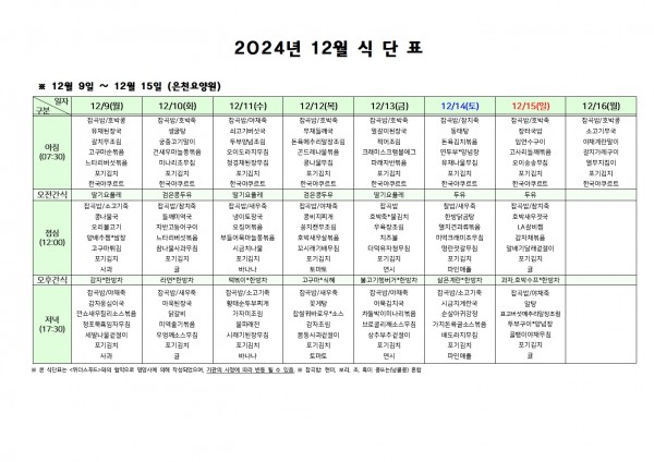 12월 둘째주 식단표 페이지 정보 작성자 은천노인복지회 작성일24-12-06 09:42 조회20,980회 댓글0건 관련링크 이전글 다음글 목록 답변 본문 . 이전글 다음글 목록 답변