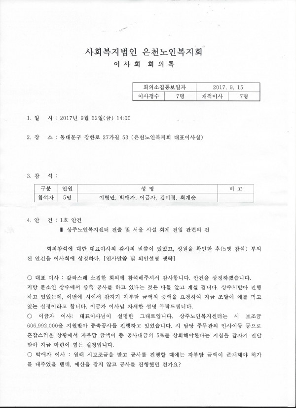이사회의록 공개 페이지 정보 작성자 은천노인복지회 작성일17-10-16 14:27 조회36,986회 댓글0건 관련링크 목록 본문 9월 22일 상주노인복지센터 전출의 건 이사회의록을 공개합니다. 목록