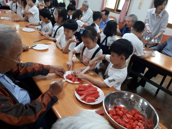 지역연계사업(새일문유치원-수박화채만들기) 페이지 정보 작성자 은천노인복지회 작성일18-07-31 09:59 조회37,525회 댓글0건 관련링크 이전글 다음글 목록 답변 본문 새일문유치원 원생들과 수박화채만들기 진행하여 원생들과 시원한 여름을 보냈습니다. 이전글 다음글 목록 답변
