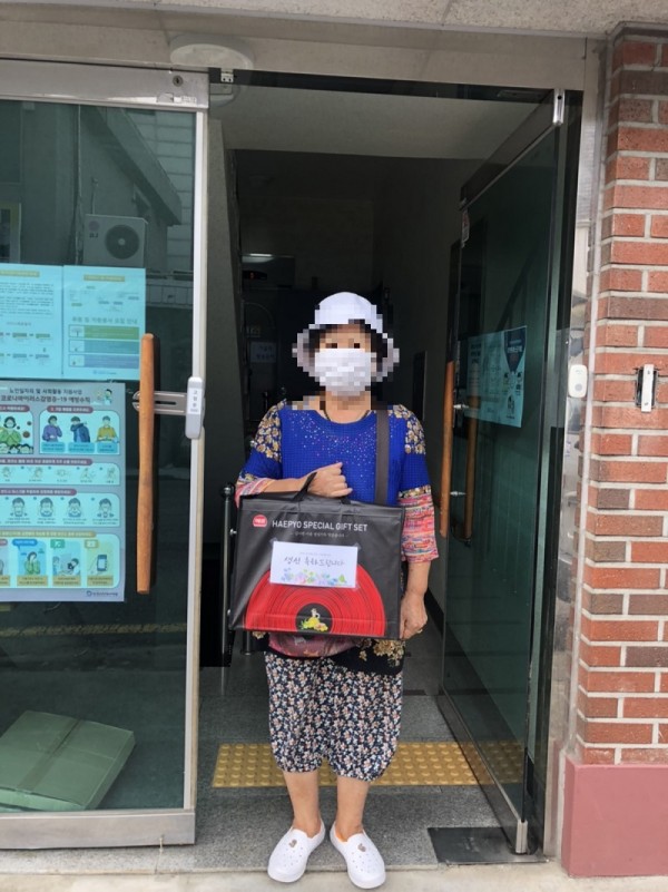 코로나19로 집합이 어려워 식사 대접을 하지는 못 하여 생필품 세트를 선물로 지급하였습니다.