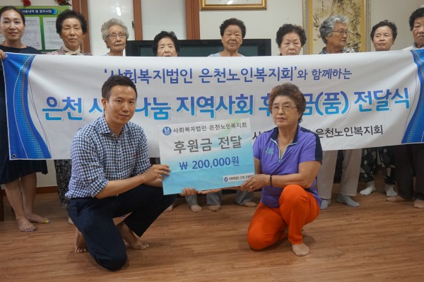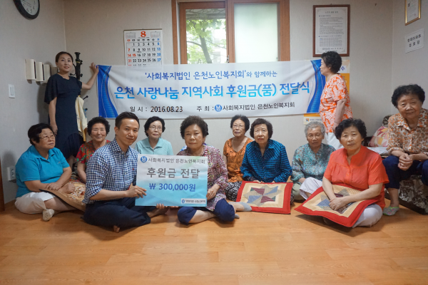 경로당 돕기 후원 페이지 정보 작성자 은천노인복지회 작성일17-01-16 16:39 조회38,916회 댓글0건 관련링크 이전글 다음글 목록 답변 본문 동대문 지역 열악한 경로당을 찾아서은천재가노인지원센터에서 후원금을 전달하였습니다.창방경로당, 전농3분회경로당, 방배경로당, 청량리현대경로당 이전글 다음글 목록 답변