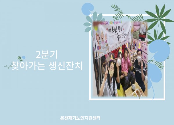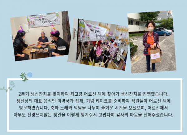 [재가노인지원서비스] 2분기 찾아가는 생신잔치 페이지 정보 작성자 은천노인복지회 작성일22-07-06 13:26 조회18,532회 댓글0건 관련링크 이전글 다음글 목록 답변 본문 2분기 찾아가는 생신잔치 이전글 다음글 목록 답변