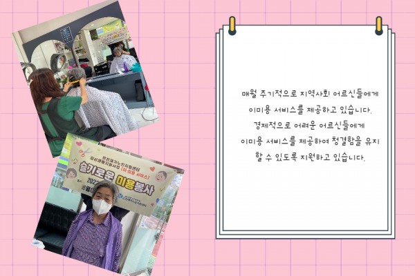 [재가노인지원서비스] 이미용 서비스 페이지 정보 작성자 은천노인복지회 작성일22-07-06 13:27 조회18,343회 댓글0건 관련링크 이전글 다음글 목록 답변 본문 6월 이미용 서비스 이전글 다음글 목록 답변
