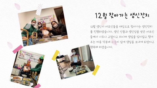 [재가노인지원서비스 ] 12월 찾아가는 생신잔치 페이지 정보 작성자 은천노인복지회 작성일21-12-31 13:32 조회20,582회 댓글0건 관련링크 이전글 다음글 목록 답변 본문 12월 찾아가는 생신잔치 이전글 다음글 목록 답변