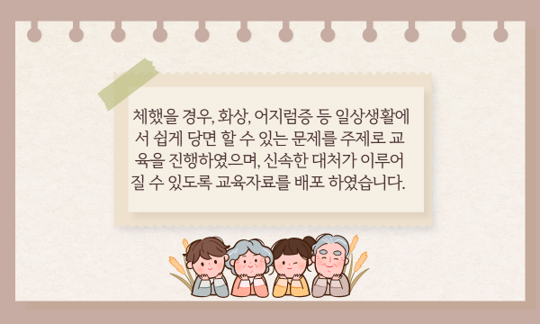 [재가노인서비스] 대상자교육_응급처치교육 페이지 정보 작성자 은천노인복지회 작성일22-03-03 11:43 조회19,745회 댓글0건 관련링크 이전글 다음글 목록 답변 본문 은천재가노인지원센터 대상자 어르신들에게 응급처치교육을 진행하였습니다. 이전글 다음글 목록 답변