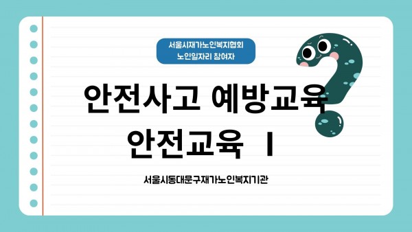 이번 교육을 통해 참여 어르신들의 활동 중 안전의 중요성을 공유하고, 낙상 사고 예방을 위한 기본적인 안전 수칙을 함께 살펴보는 시간을 가졌습니다.